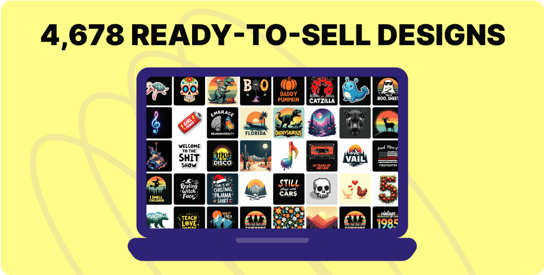 • Our designs are already optimized for T-shirts, stickers, mugs, tote bags, phone cases, and more.
